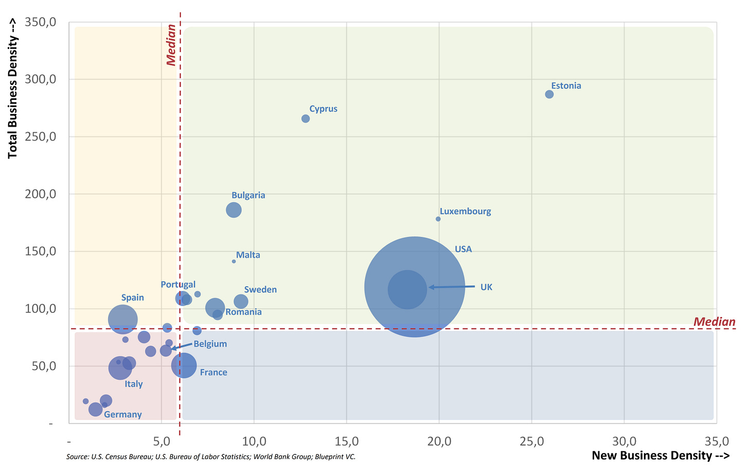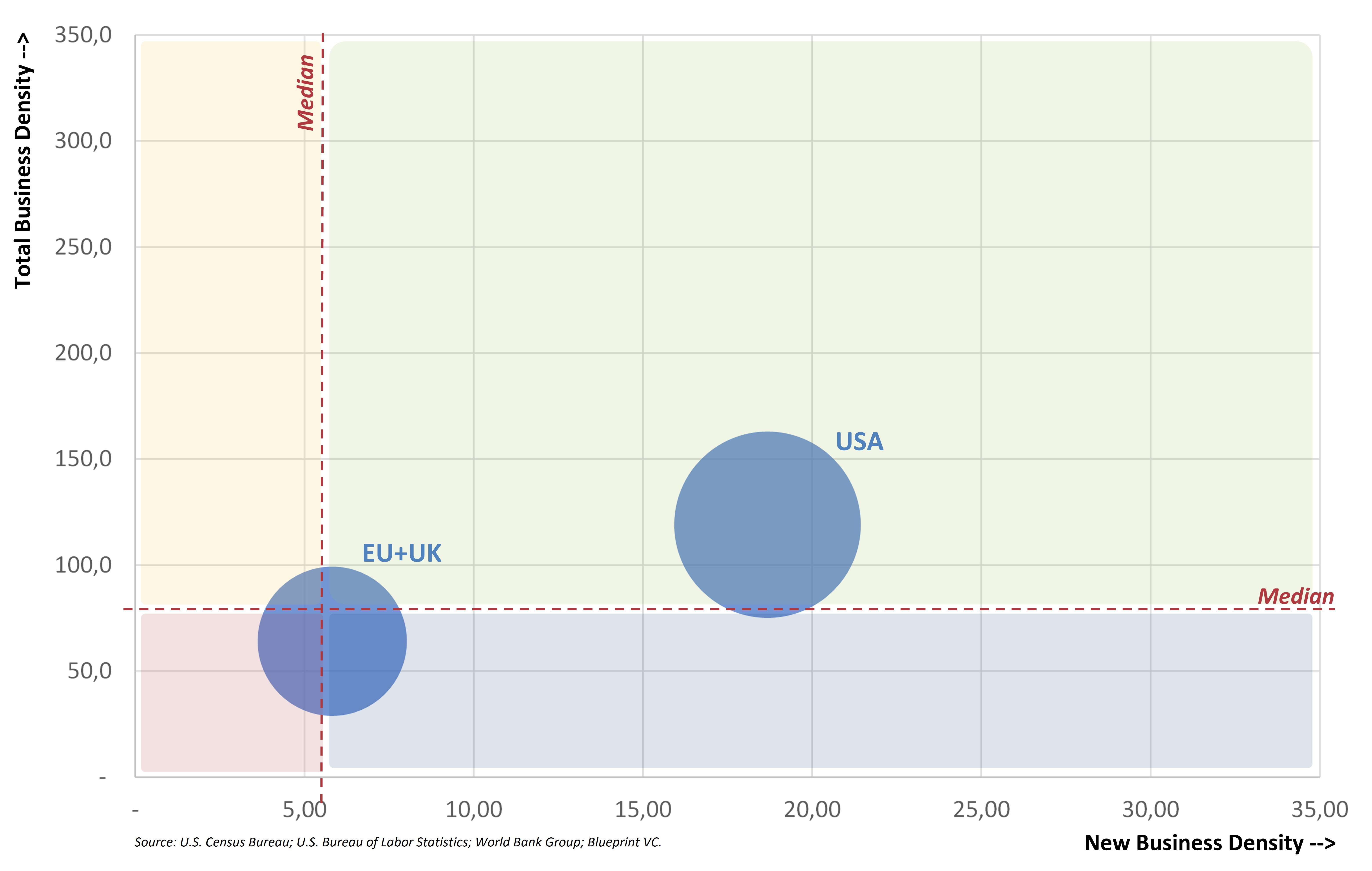 Of course, this dynamic does not play out uniformly. Depending on the country, markets exhibit very different levels of maturity: entrepreneurial density, depth of capital, risk culture, capacity to absorb failure. The charts that follow illustrate these gaps precisely, showing how democratization translates differently across national contexts.